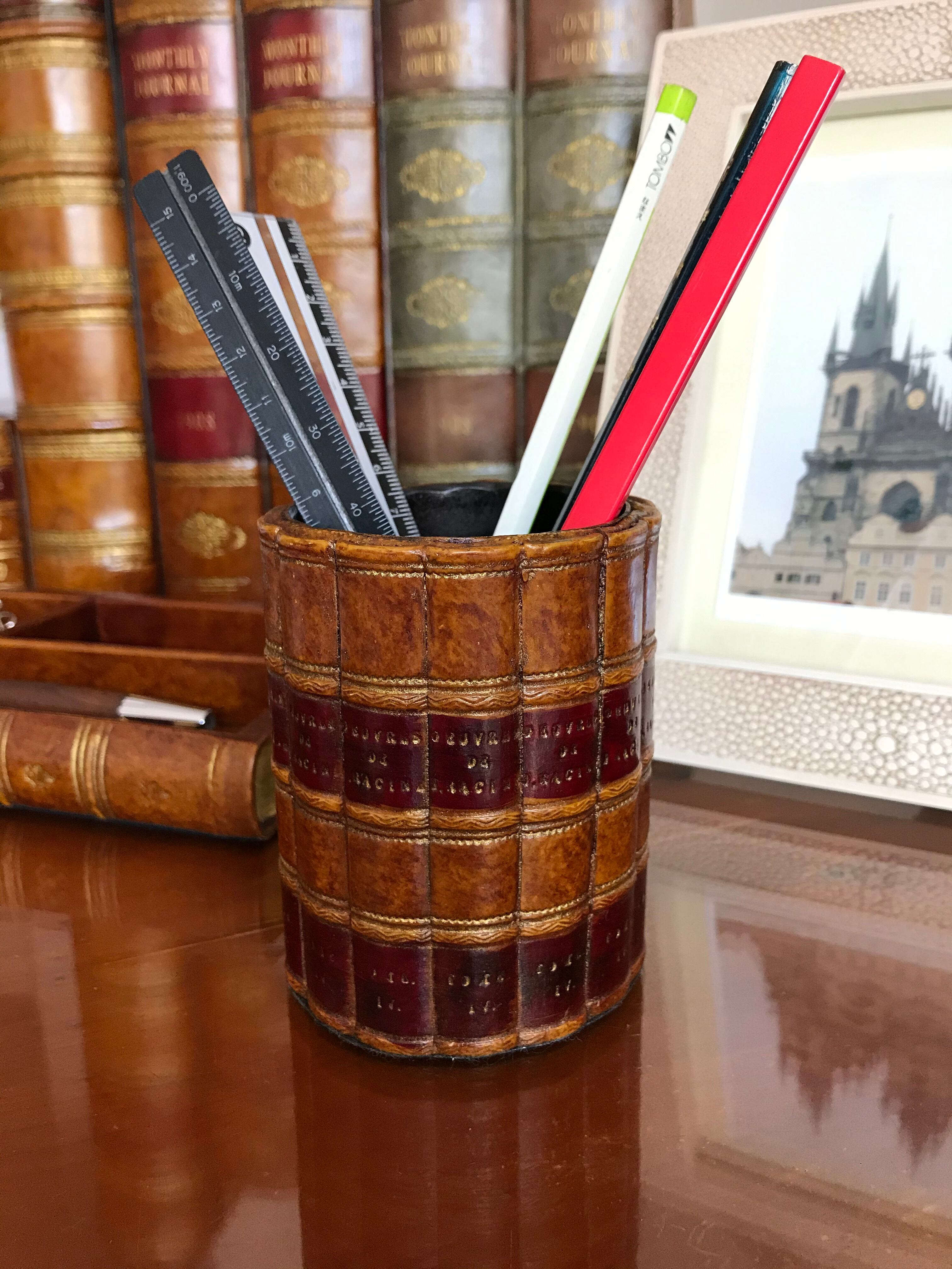 どこでも使い勝手の良い丸いペン立て。装飾性だけでなく実用性も兼ね備えています。