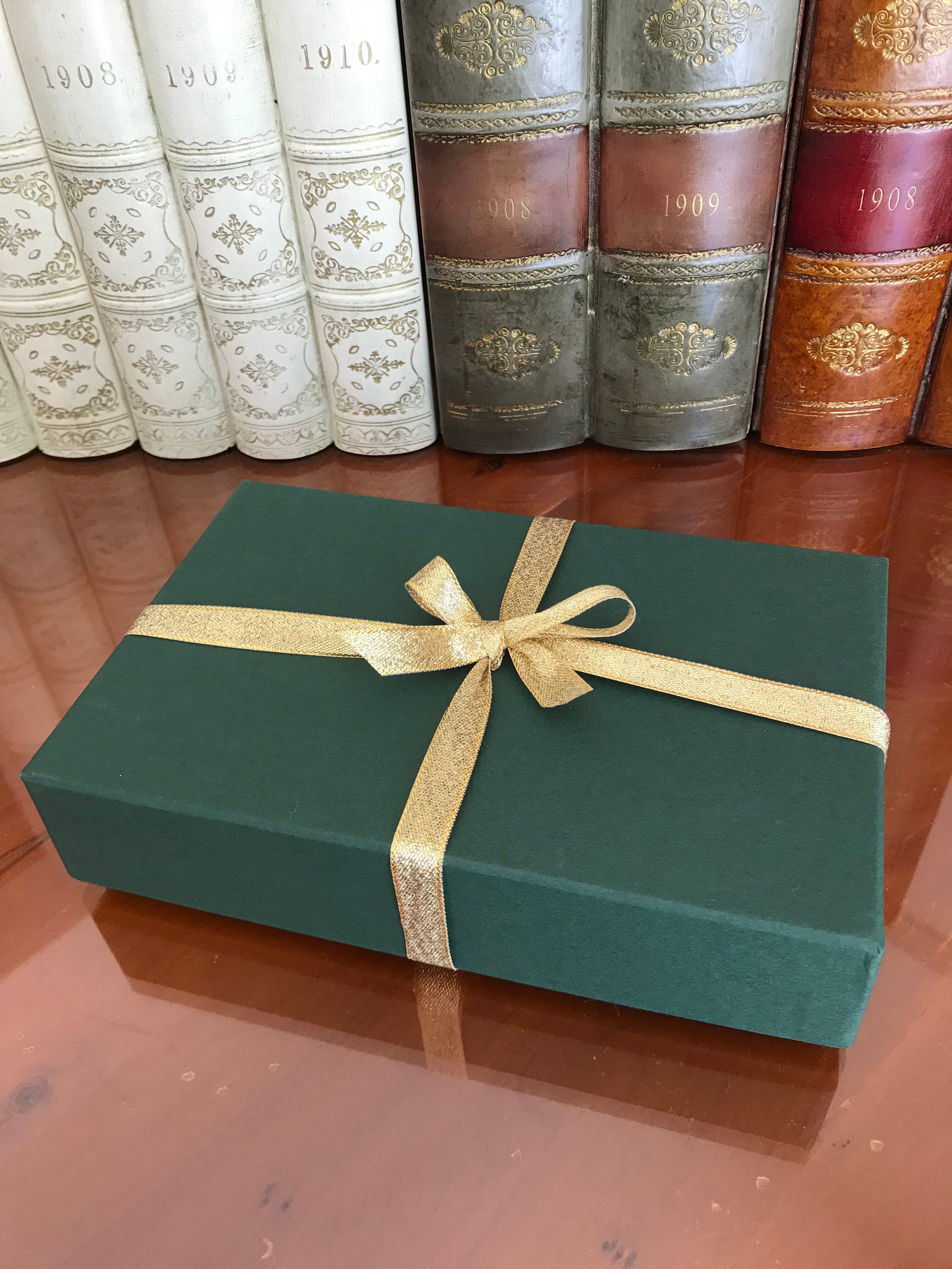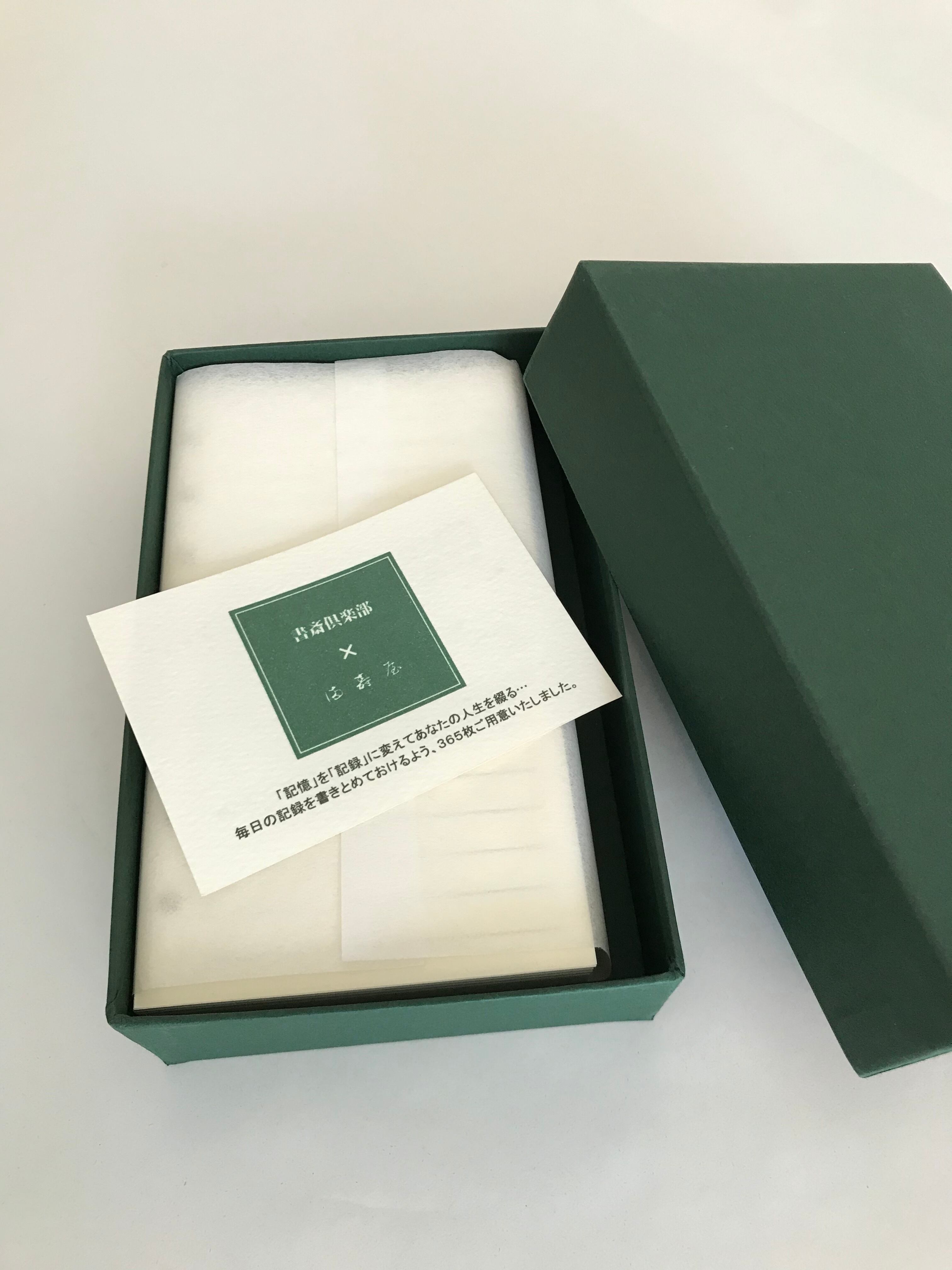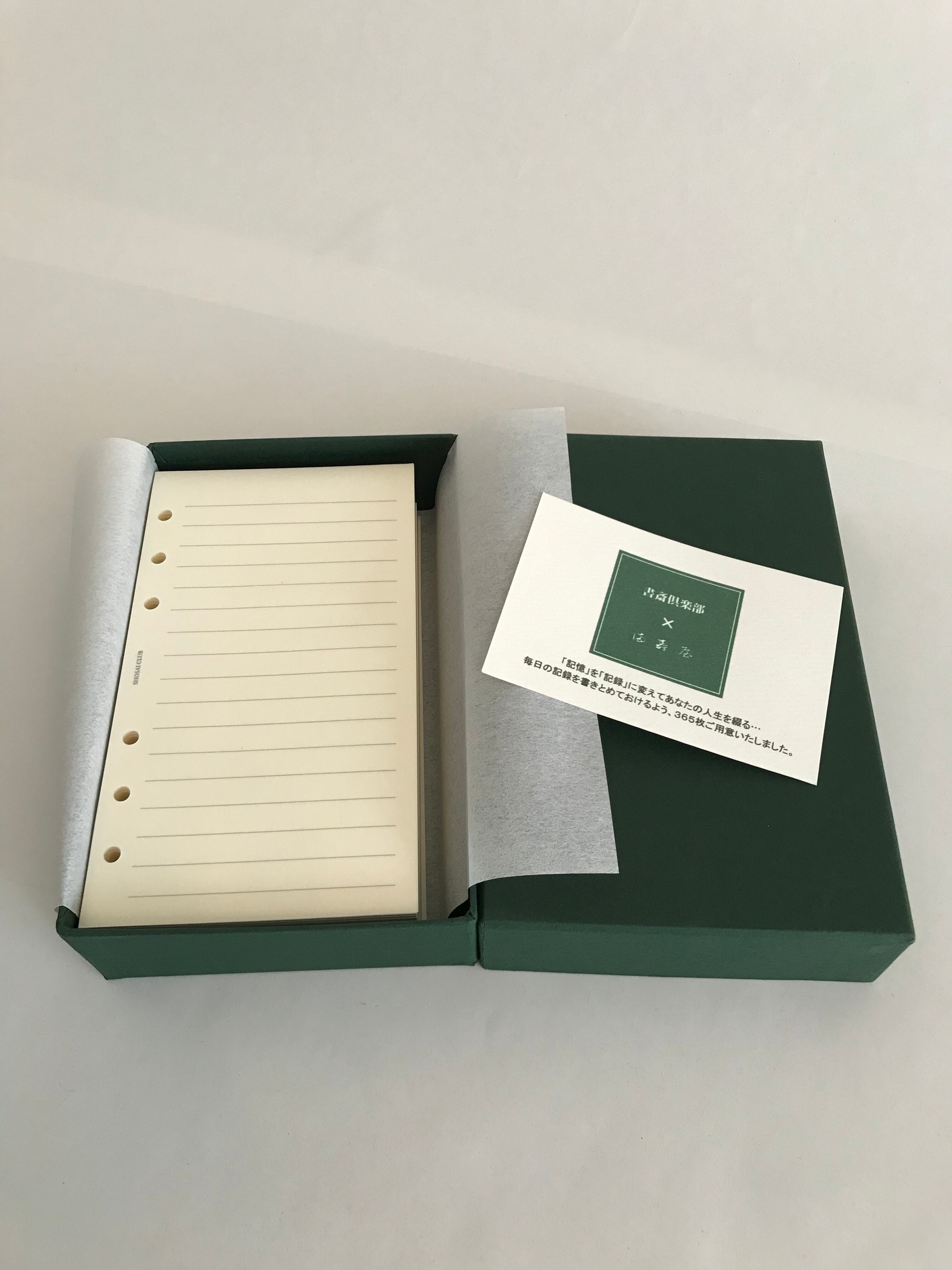 大切にしたい拘りのメモ用紙を深緑の化粧箱へいれて残すことができます。