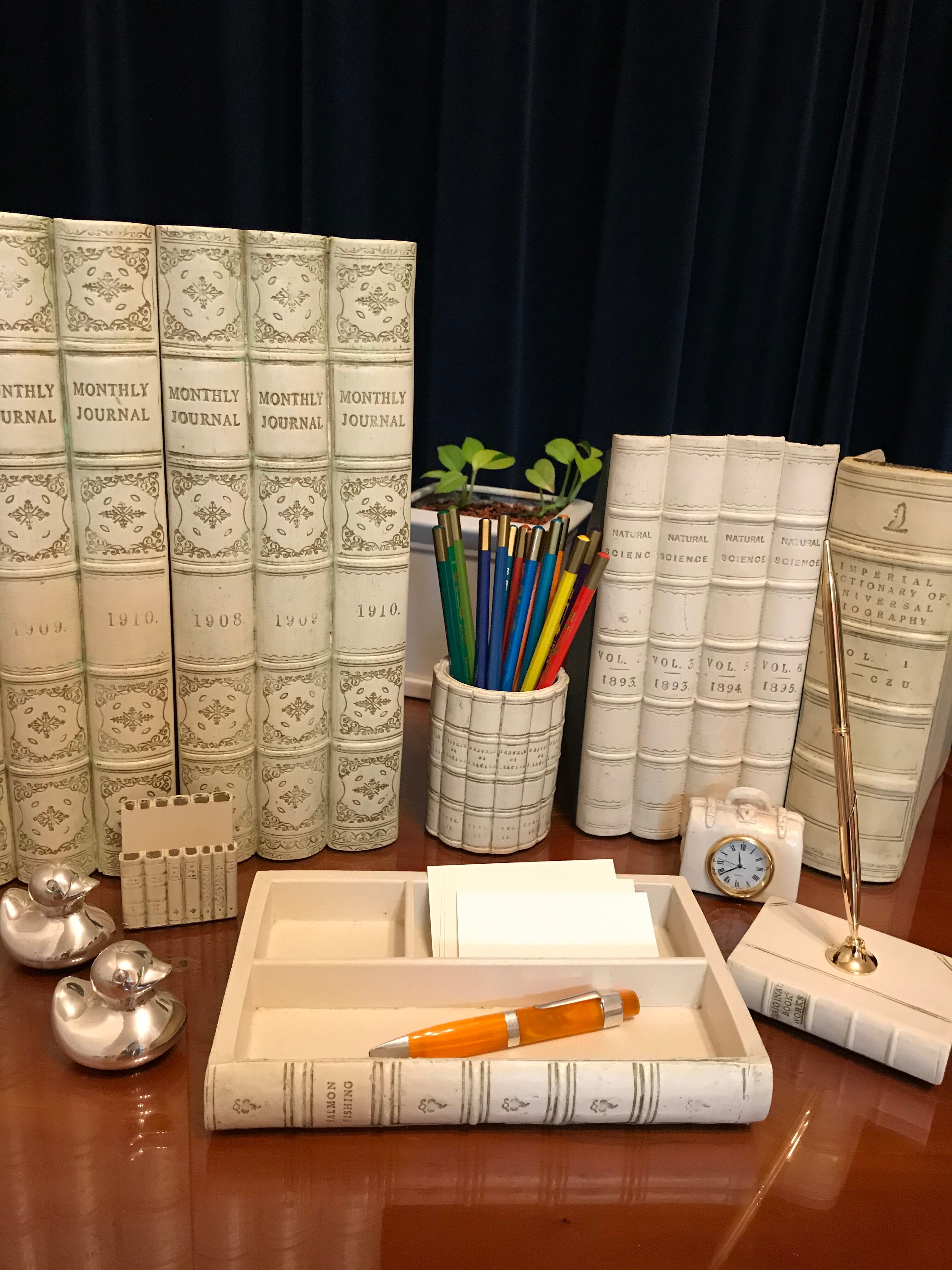どこでも使い勝手の良い丸いペン立て。装飾性だけでなく実用性も兼ね備えています。
