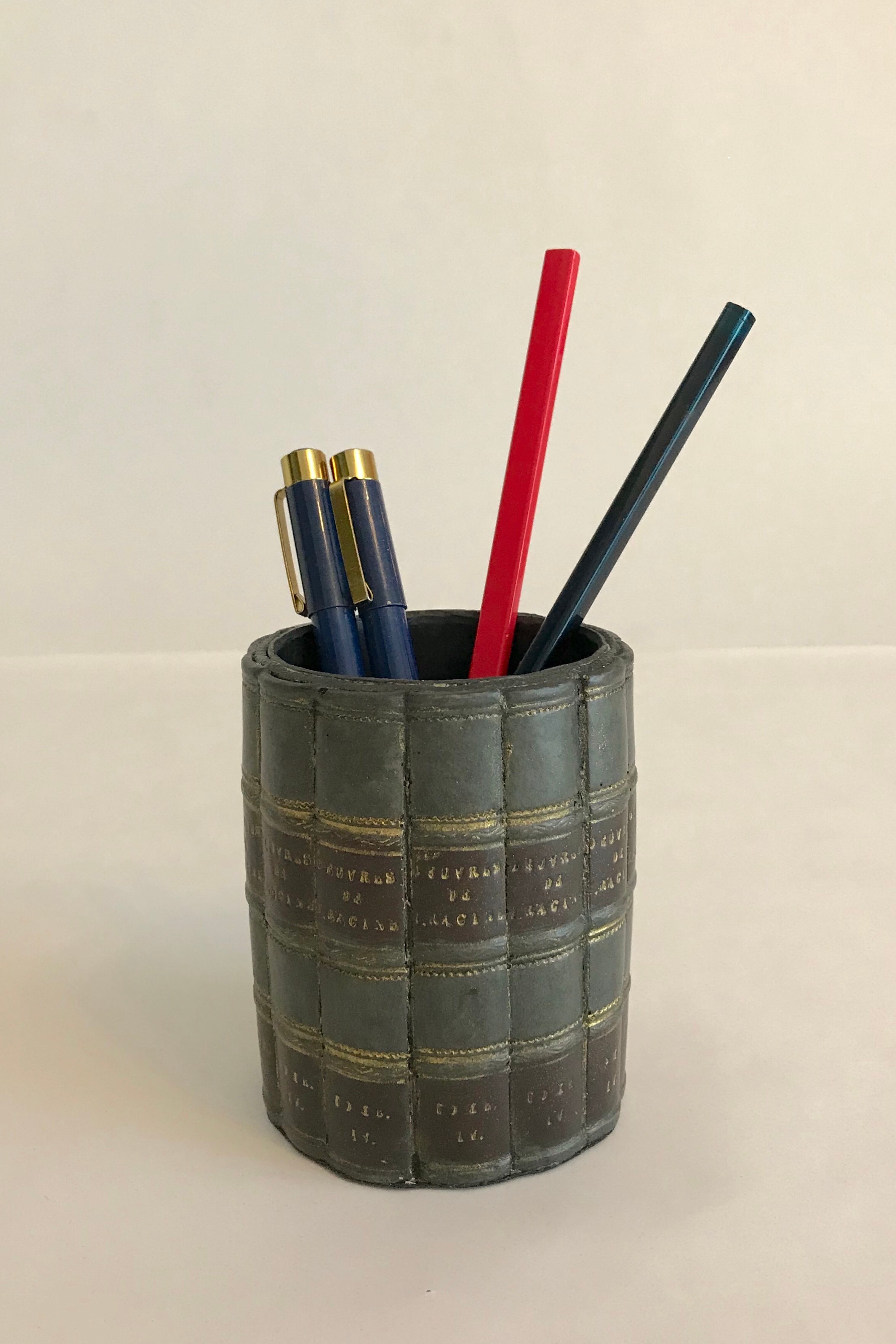 どこでも使い勝手の良い丸いペン立て。装飾性だけでなく実用性も兼ね備えています。
