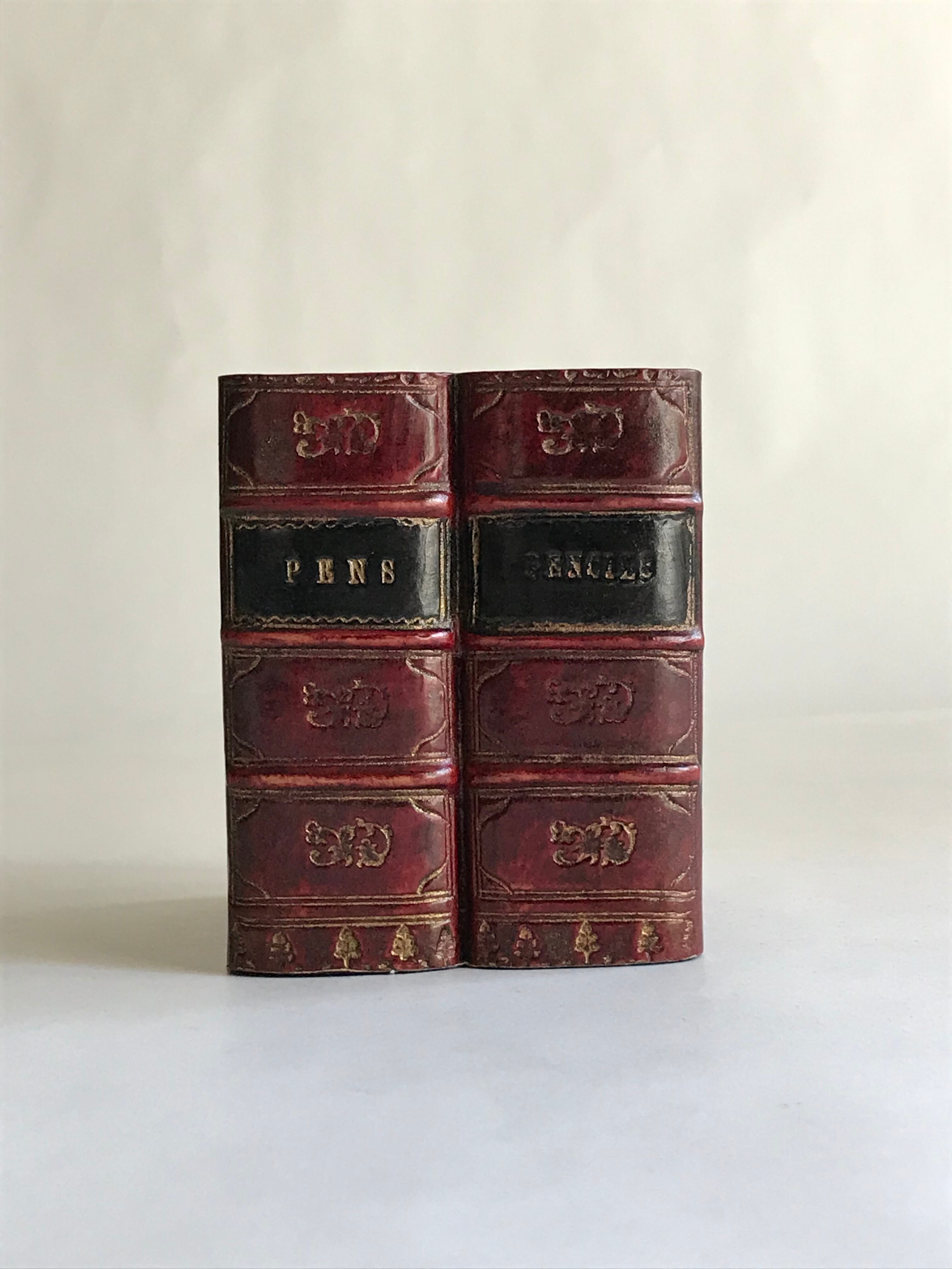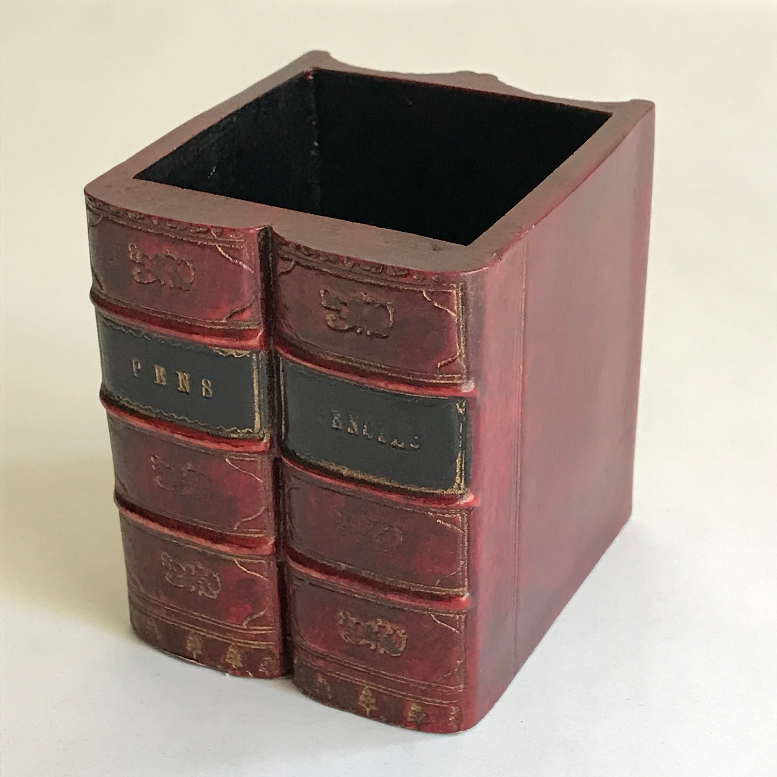 存在感のある小さくてもしっかりとした手彩色の仕上げが際立つ一品です。おさまりのいい角形ペン立て。