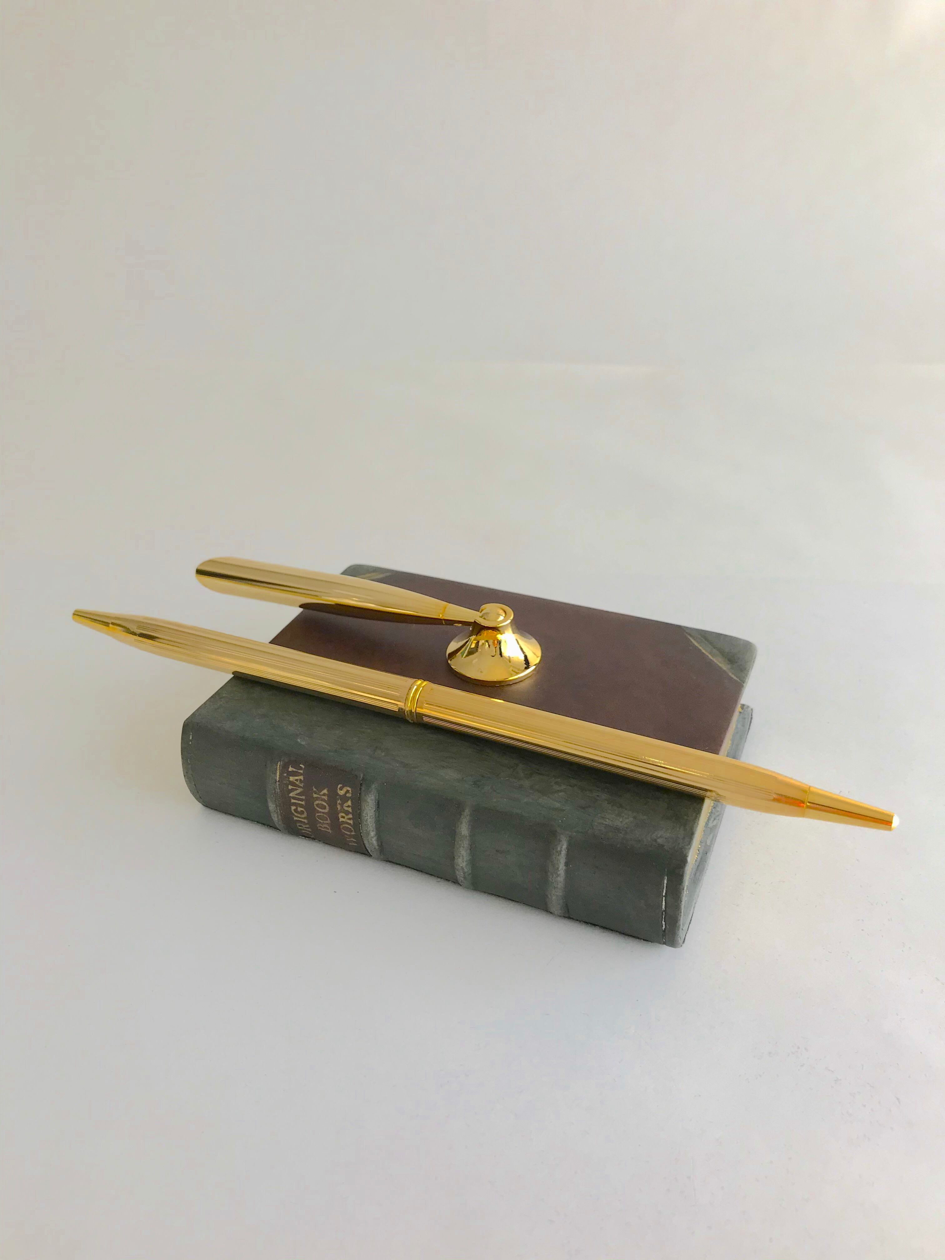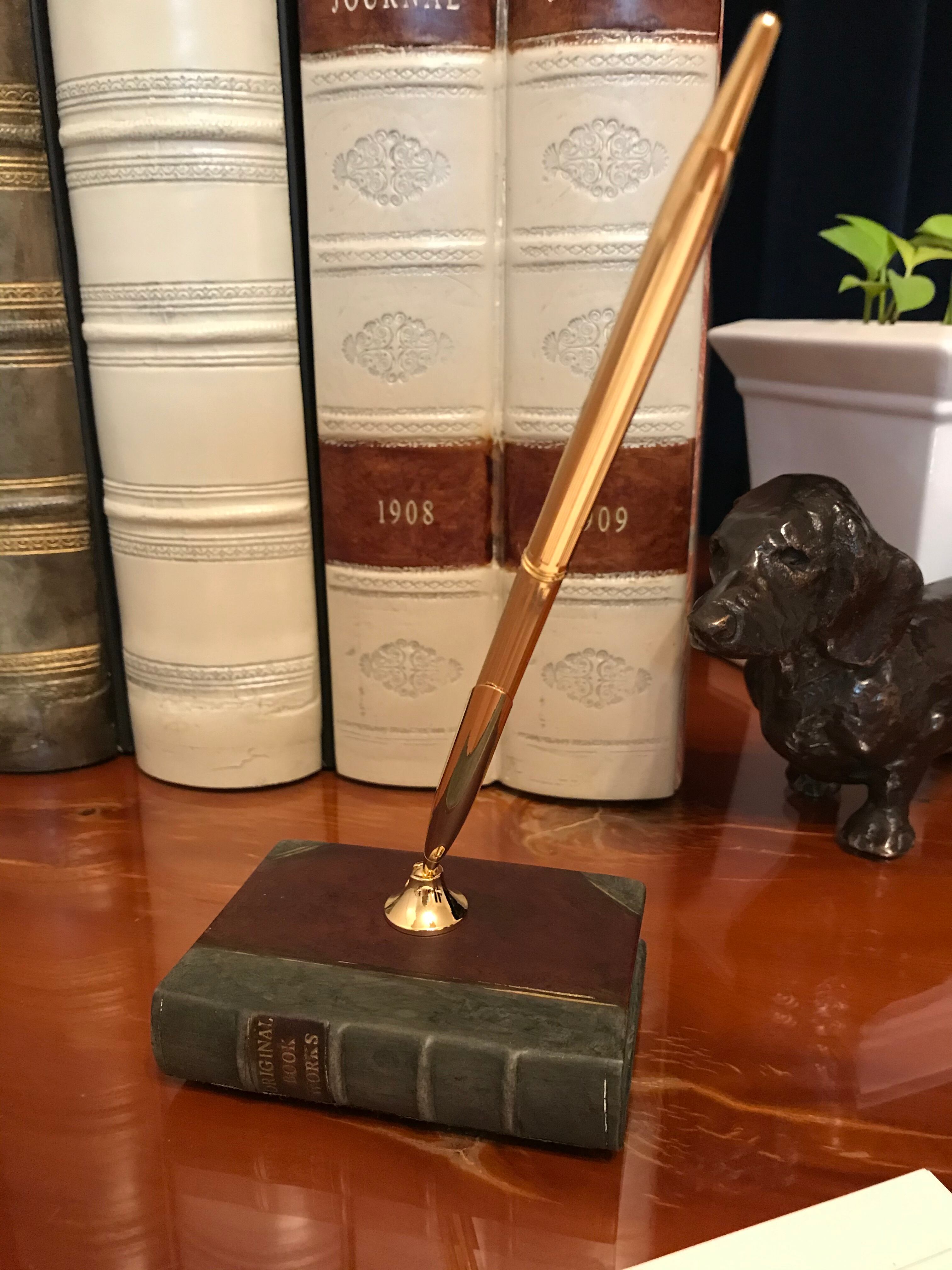 CROSSボールペン付きです。アンティークの雰囲気がありながら実用的。お部屋のアクセントに。大切にしたい一品です。