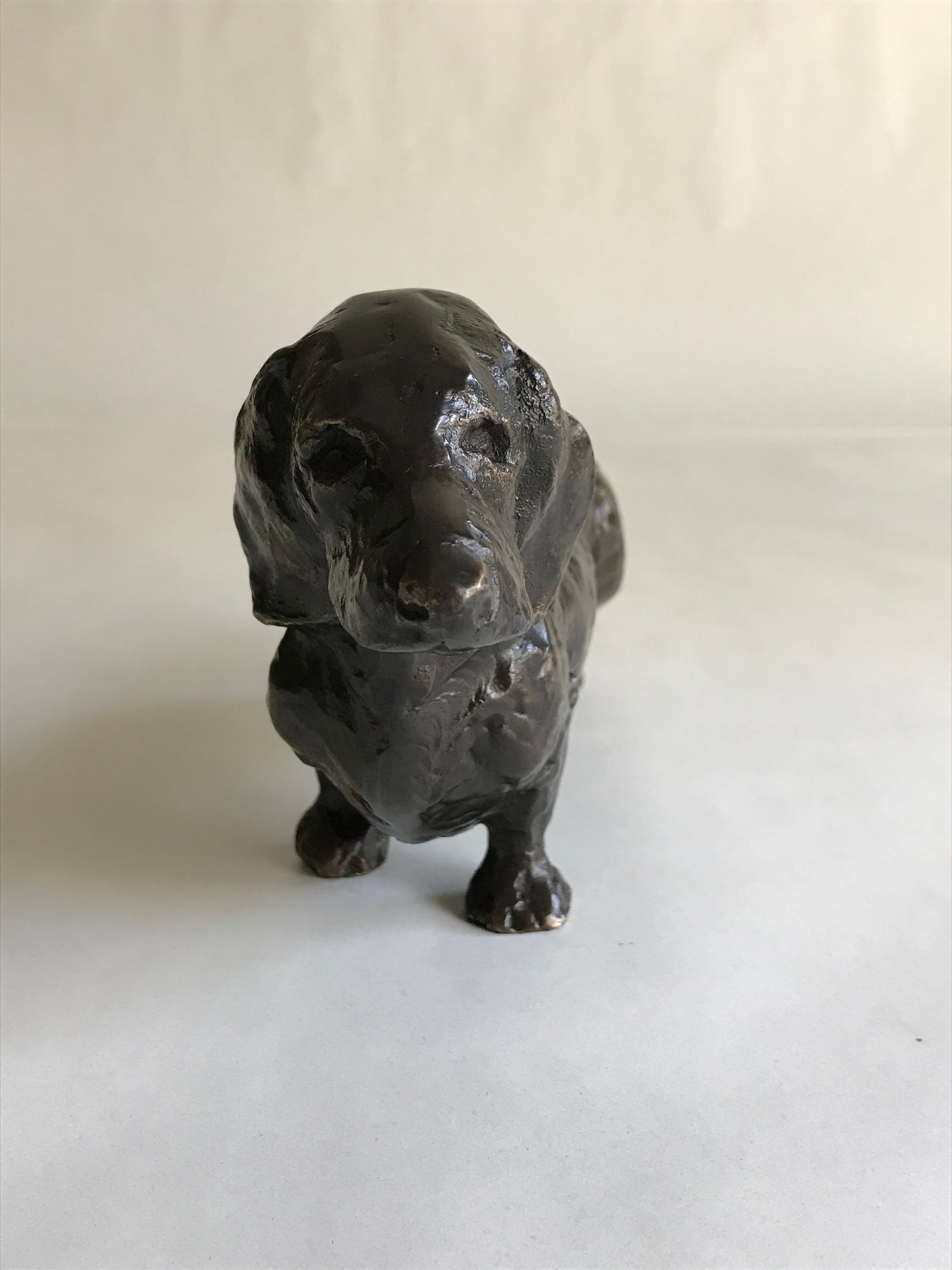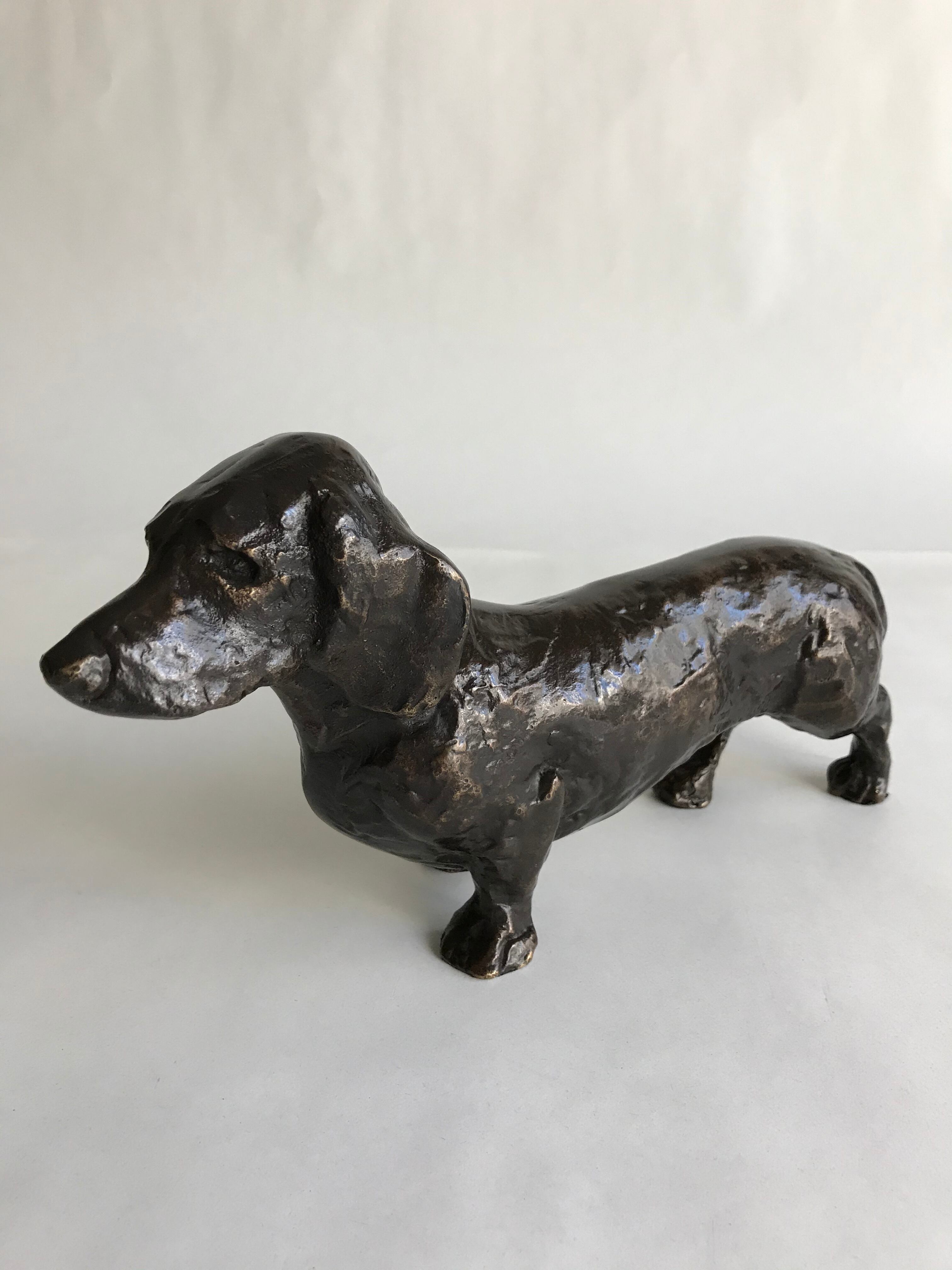 よく描写されたブロンズのダックスフンド犬。お部屋でご一緒にお過ごしください。