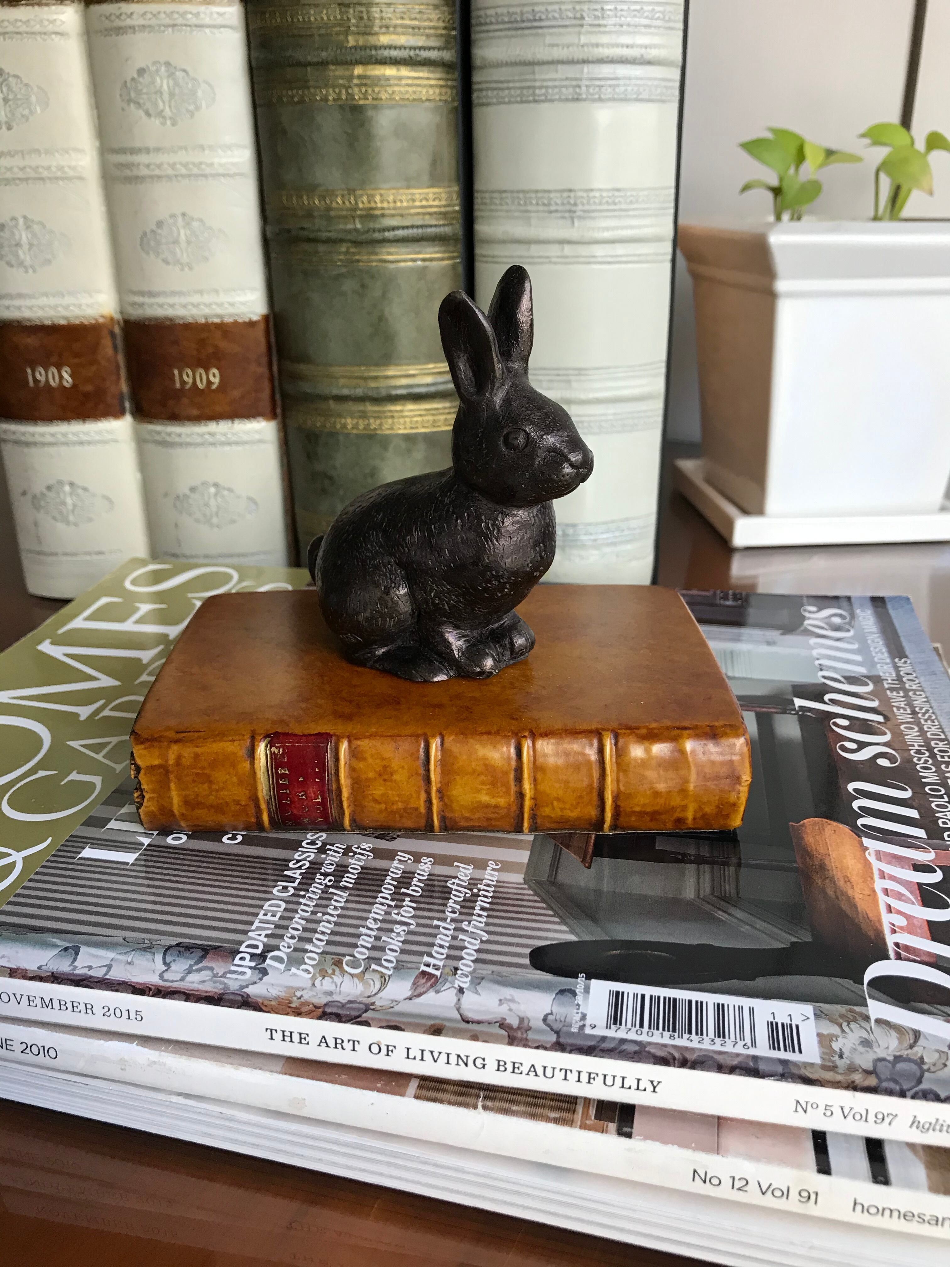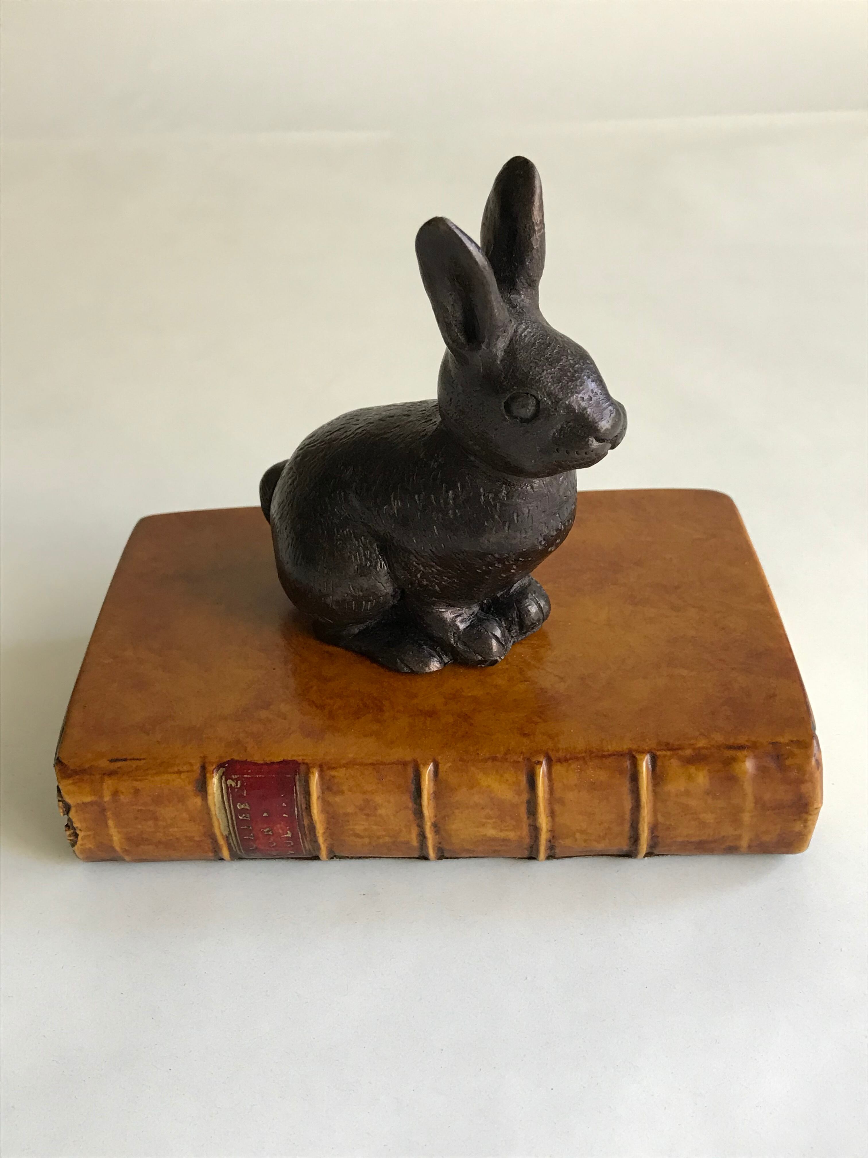 コッツウォルズ地元の作家により彫刻されたラビットが、オリジナルブックワークス本の上に座っています。ペーパーウェイトとしてだけではもったいないくらい、飾って眺めていたいアニマルシリーズの一品です。